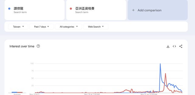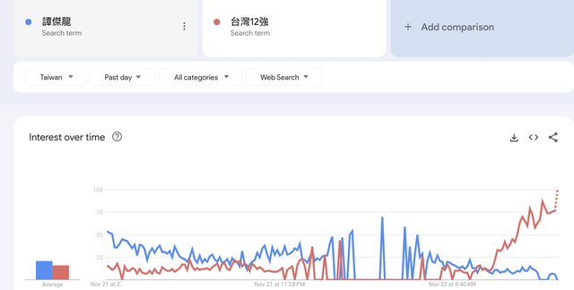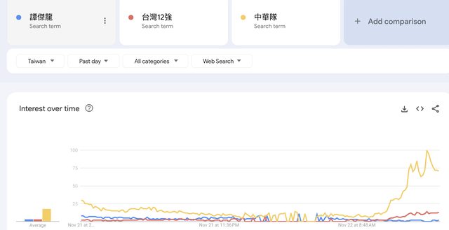→ ct13579 : 所以是打錯搜尋詞,十二強賽的流量還是打趴譚的花 11/22 14:57