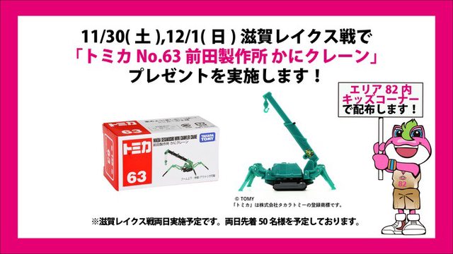 主場對陣滋賀湖隊的比賽將於11月30日(週六)和12月1日(週日)進行!
