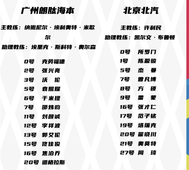 19:35廣州朗肽海本 vs 北京北汽