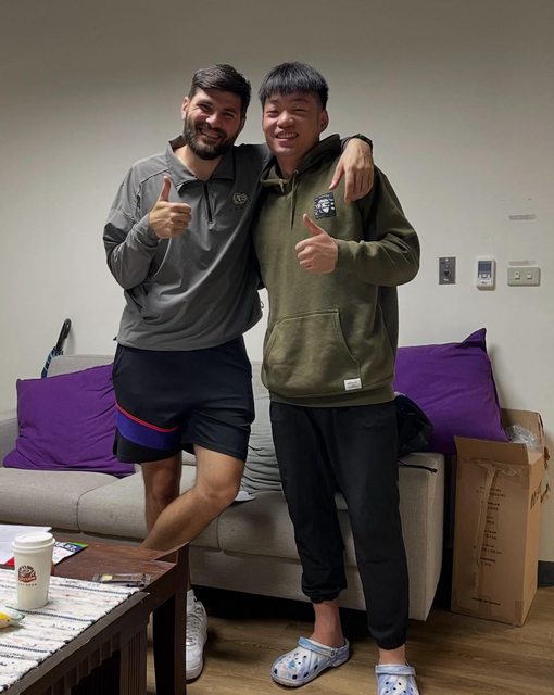 從去年他還是助教的時候打客場我們都一起住,帶他體驗各種台灣美食。很多人會問我他口