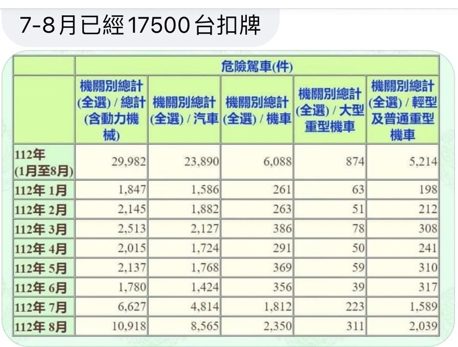 推 ctes940008: 台灣駕照太好考,路上酒駕無照一堆。 36.239.207.73 11/06 22:53