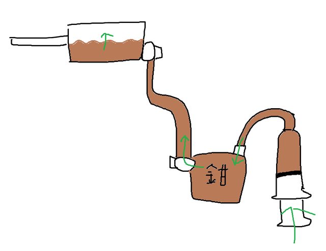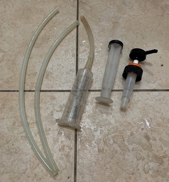 針筒、廢棄沐浴乳壓頭還有細水管。