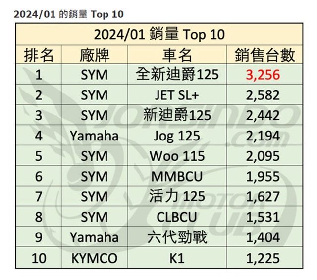 推 kutkin: n74042300 □ [情報] 2024/01 機車銷量 140.116.210.66 02/23 19:50