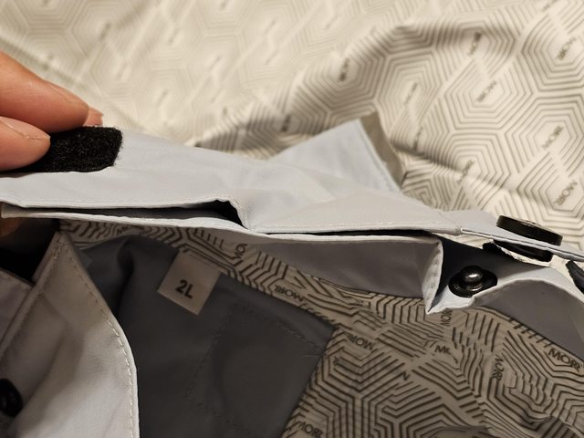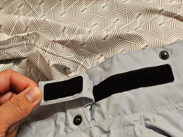 部分則是如圖都使用魔鬼氈固定;官網還有一個GIF是說騎乘前,把下擺多餘寬鬆部分收進
