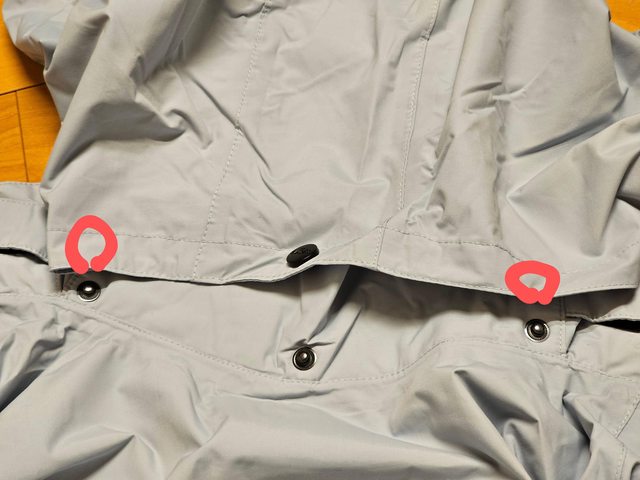 整件雨衣除了收納袋以外沒有使用到拉鍊,固定方式都仰賴磁鐵、釦子、魔鬼氈。而磁鐵總