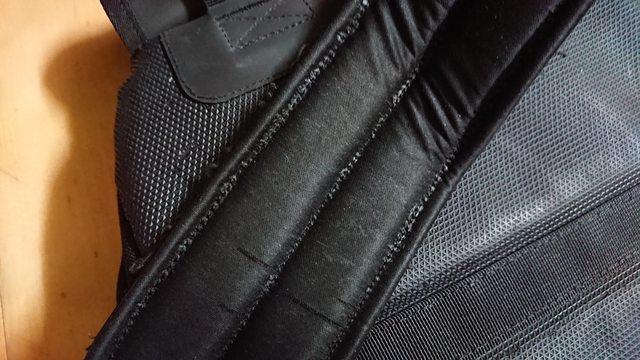 背著出門一趟,衣服深色的還好,淺色的直接多一堆黑點,因為這層材質部分黏上去了。