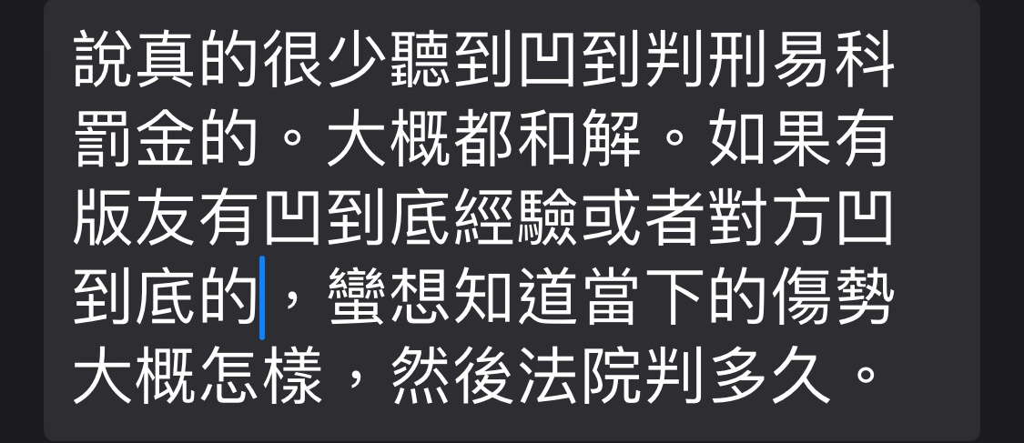 → jimmyfk: 以刑逼民,小傷對方只會繳罰金給國家而已 39.15.0.170 05/24 13:35