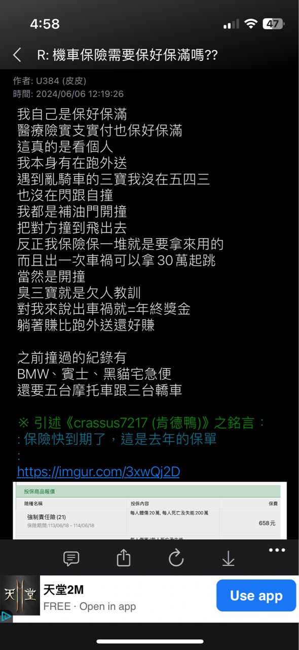 噓 oplk: "你多年車禍經驗" 有這種經驗還跑外送ZZZZ 223.140.181.29 07/02 21:25