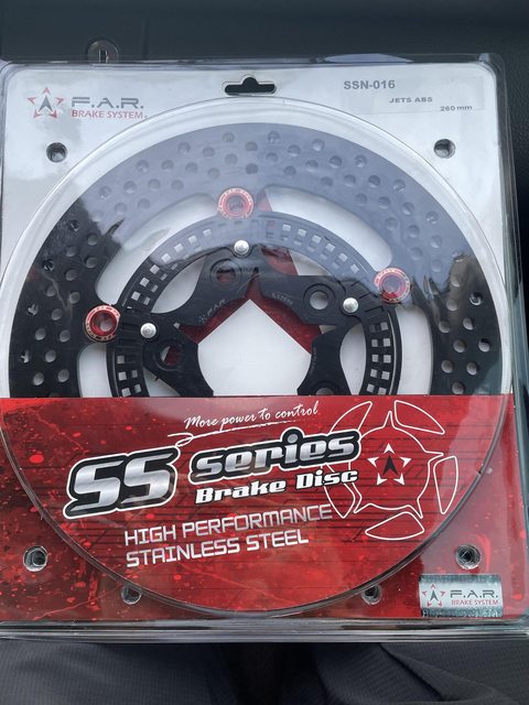 題外話,換完卡鉗之後煞車力道真的蠻大的,同樣的煞車力道,從煞車拉桿輸入的力道只需 要之前的6-7成吧,還蠻後悔沒有早點改哈哈哈。 時間回到上個月6月,朋友的碟盤磨完了要換一片,想說我也順便換成FAR的赤鬼好了,看看 蟬叫聲能不能再大一些。 原本N18配ACE複合來令的蟬叫聲其實不小,只是要騎一段時間溫度上來了才會比較明顯,但 就算溫度上來了,沒有重煞的話聲音都不明顯。 換成FAR赤鬼碟盤配EBC金屬來令之後,就算是冷車狀況下重煞也是超級大聲,而且輕煞的時 候也有聲音,真的好讚喔。 https://i.imgur.com/RuWtWHz.jpeg