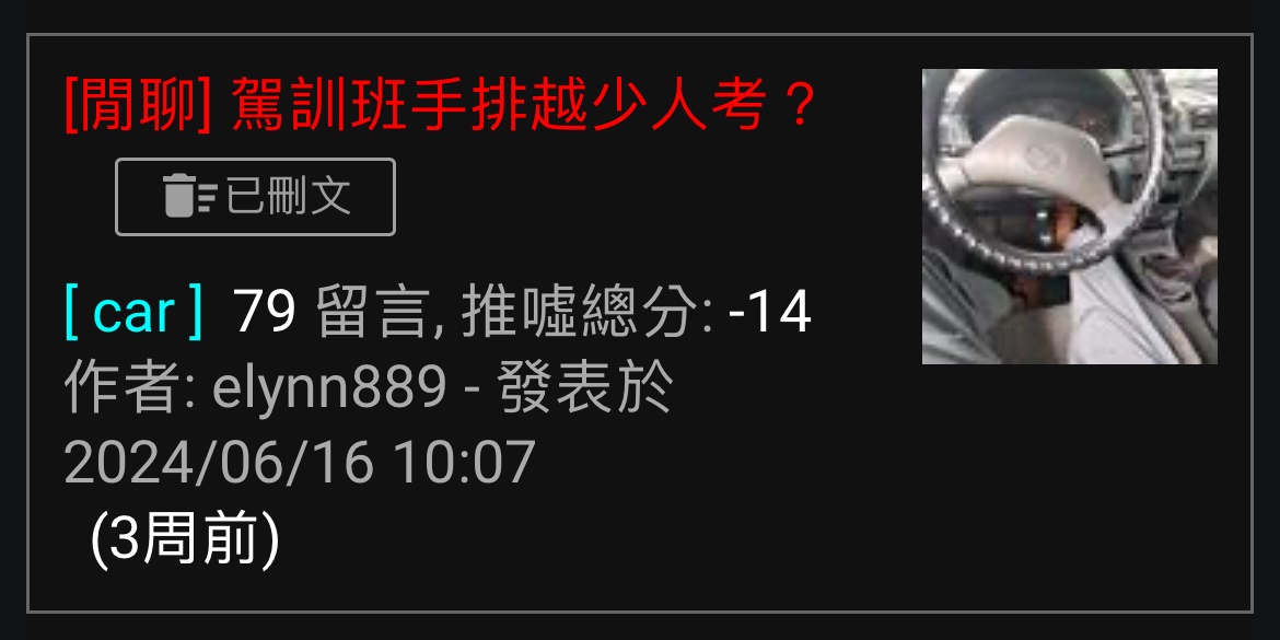 heart0606: 疑他根本沒有汽車駕照) 101.12.178.116 07/08 22:01
