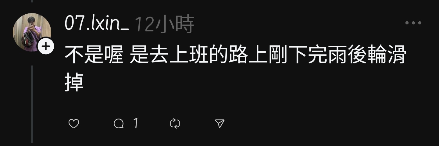 → dan5120: 怎麼撞的==?19歲逢9出事 111.71.215.244 08/09 08:56