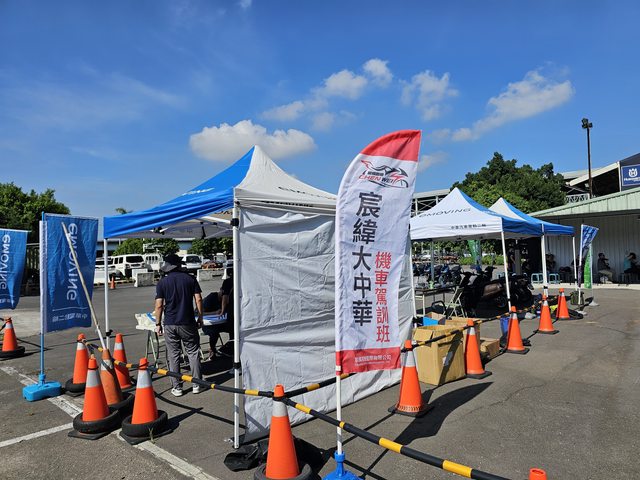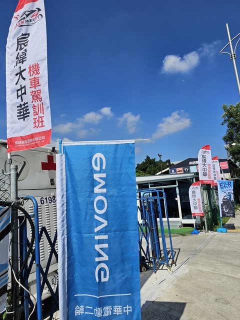 活動地點在板橋的宸緯大中華機車駕訓班,看到駕訓班跟中華電動二輪eMOVING這幾面旗