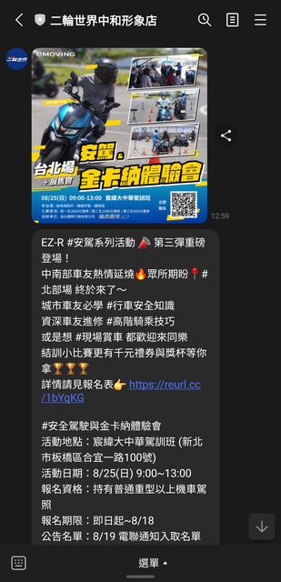 故事開始是這樣的:看到車行傳LINE就點開來看看內容...噢,中華電車的EZ-R試乘跟安