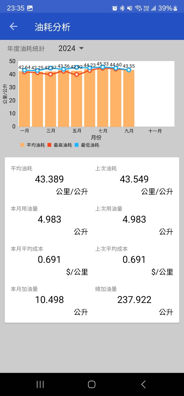 2萬公里(多一些)總共使用521L 92汽油 共1萬5千元 大約1~2周加油一次