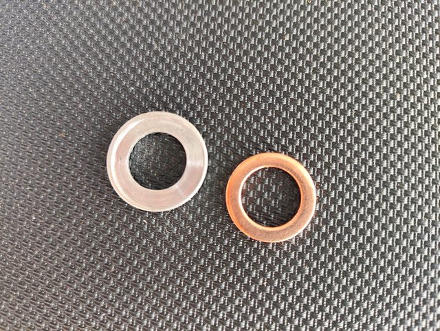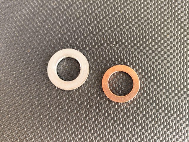 之前有買一盒通用的銅墊片 墊片外徑大小和原廠鋁墊片不同就沒有使用