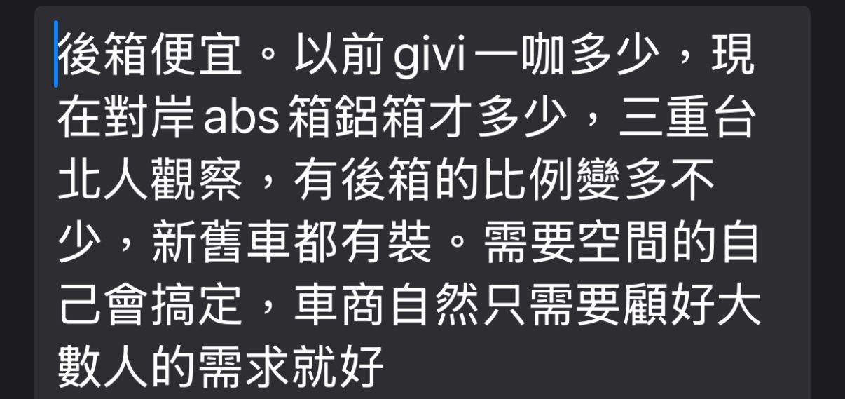 → sukoo: SYM其實可以再出一台車箱特化車,性能不用頂 60.250.189.235 05/05 07:46