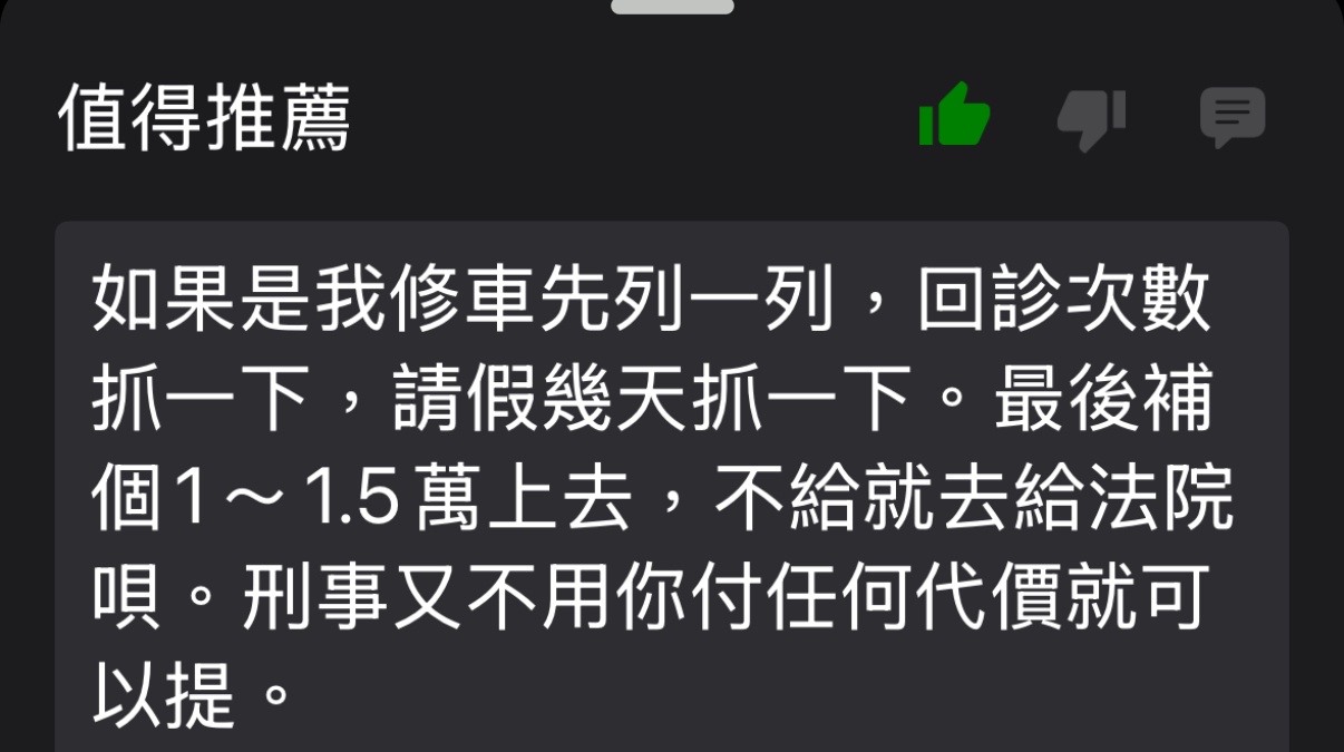 推 vovoson: 我以前出車禍 上網查了一堆也跟他說這個 123.194.10.194 06/13 11:24