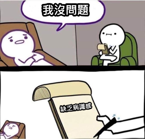 → sazabijiang : 沒有病識感的人,當然不覺得自己生病。06/24 16:34