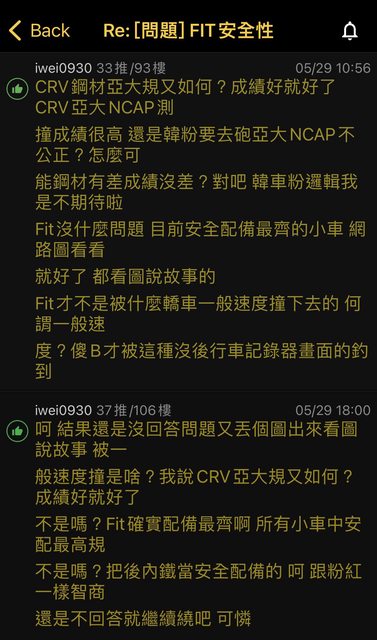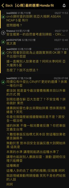 推 yoyoboy1 : 希望不要測Yaris, 因為測出來五星的話, CRV車主06/30 23:02