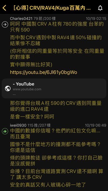 雖然CRV安全性不怎麼樣,但保值性實在太香了,不要隨便填海,浪費錢錢Q_Q
