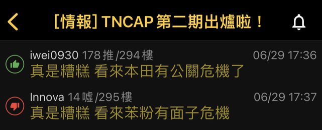 → joe51408 : 我想跟本田是半斤八兩沒什麼問題07/01 00:13