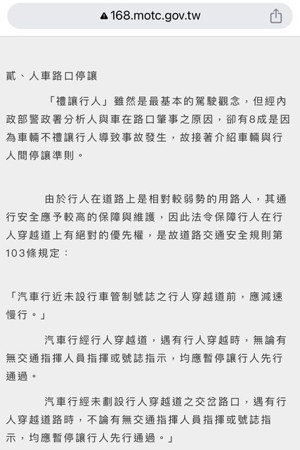 → peehs : 撞死是不禮讓造成的?? 目小駕駛有受到什麼約束了07/02 17:04