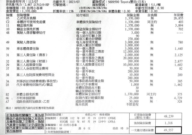 推 shenmi : 不明車損限額有點盤,47xx最高給付2500007/13 13:05