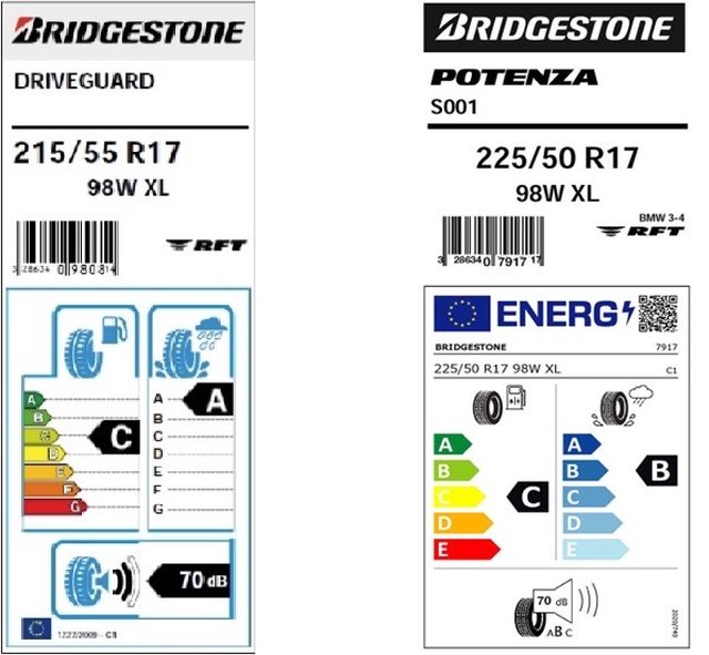 按照輪胎標示,這兩條輪胎在噪音與省油兩項,應該是沒有差異