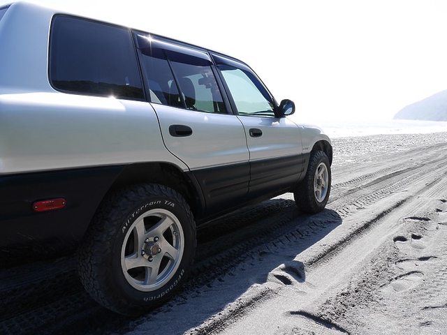 爆胎也能開,不過8月中部幾乎每天的午後雷陣雨,車是拿來開的,不是拿來撞的,還是