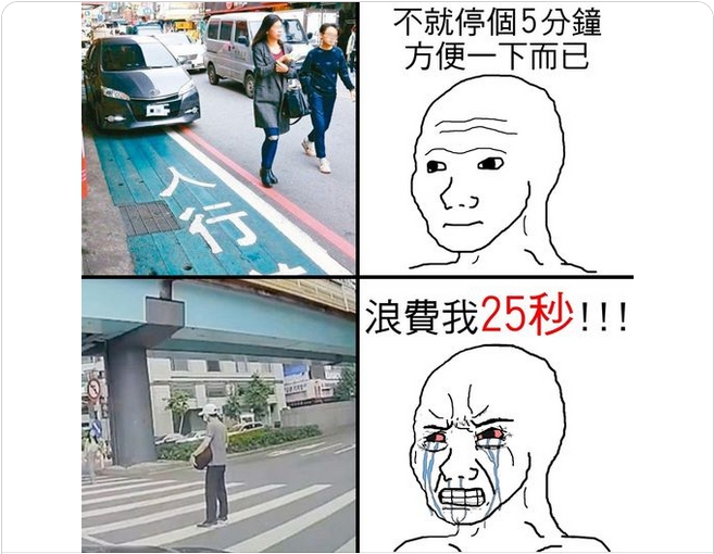 → sing60905 : 有網路媒體下標說行人扯 台灣違停確實是不扯到處有 09/19 15:40