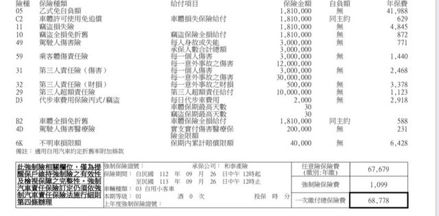 推 summer08818 : 體傷跟財損調低 超額就會被限額或保費變多 看哪間 09/27 12:50