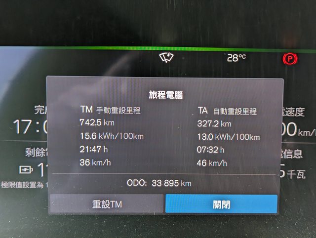 大家安安, 在車板上看到RV大大分享TESLA縱切蕃薯的路線後,我也很好奇XC40 RECHARGE Single是 否能一日縱切地瓜, 剛好XC40 RECHARGE車主群組也有個前輩分享Google map路線圖, 所以在車子滿週歲的連假期間安排了一日縱切地瓜的行程, 最後順利完成了旅程,但因為沒查好道路封路時間被困在不同管制口2次不能進去,所以 跑了2天才完成 QQ 整趟旅程大概開了772公里(下圖忘記按停止),電耗15.5kHw/100km,雖然都在山區鑽來 鑽去但意外的省電 http://i.imgur.com/yuruawv.jpg