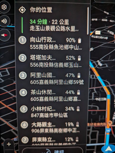到台北市快充補滿電,當時估計到武嶺是-3%電力 http://i.imgur.com/9PgNEu2.jpg