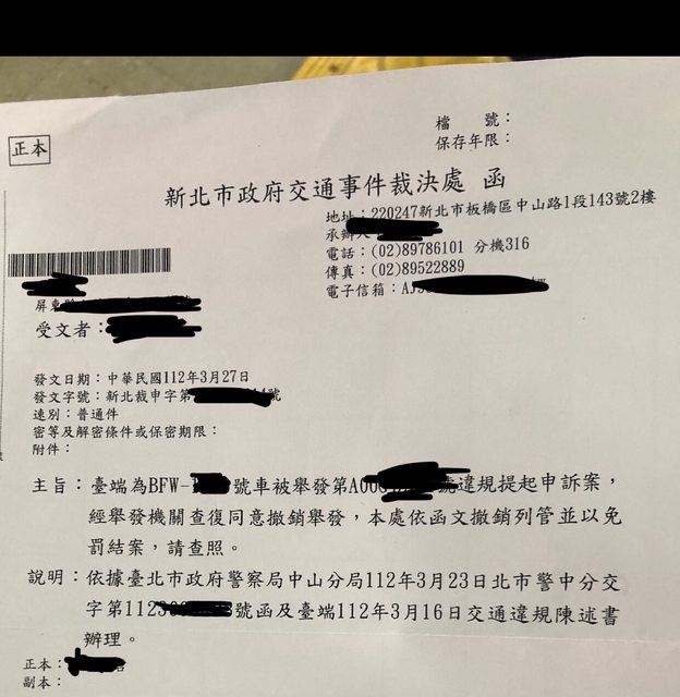 推 v2ssili : 罰單標號裁決書上面一定要有 就是被你碼掉的"原舉 10/15 19:32