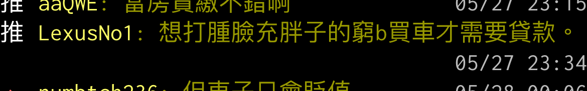 → orzzz : 麼好嘴的,車主自己有自己的財務規劃都尊重 10/23 23:36
