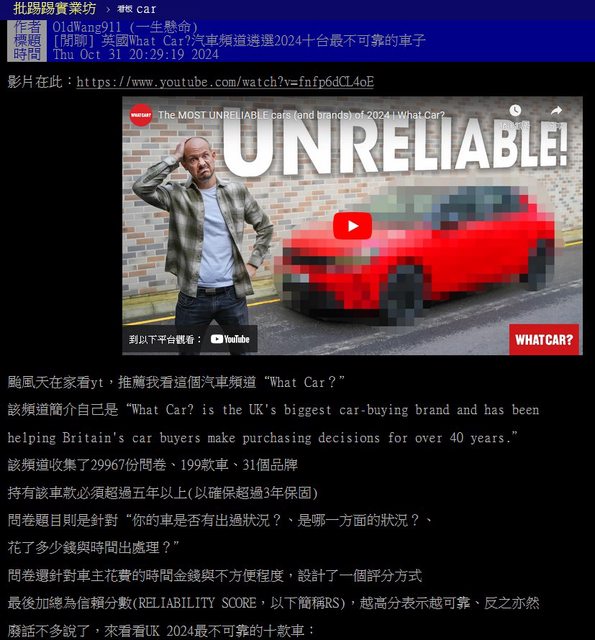 → OldWang911: tem)。這類問題反而在其他九輛不可靠車沒出現。推測11/01 20:32