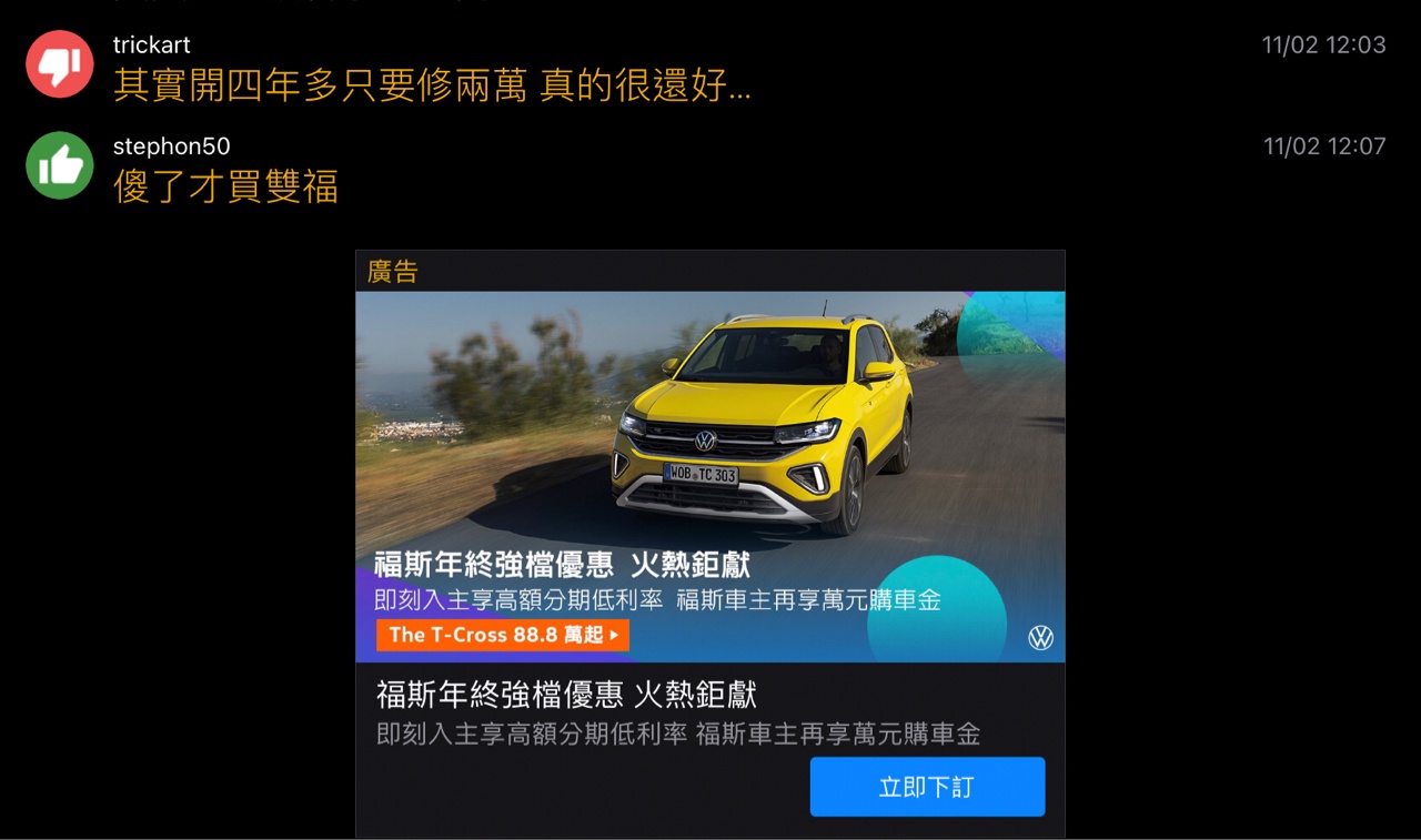 → viajoyce: 是在打臉我還是打臉日系車? 11/02 20:10