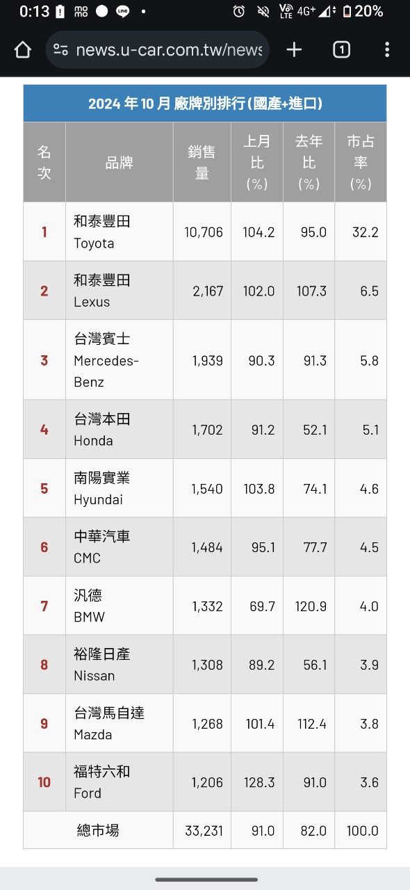 噓 TsBC: 靠勢豐田全球大賣,和泰本身沒多厲害,過太爽 11/02 06:24