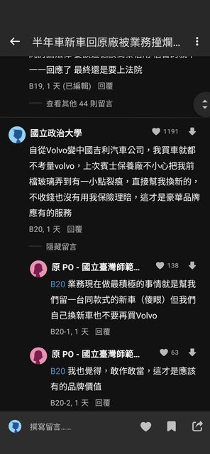 → bluetory99: 到府是吉利沃爾沃的規定?如果是那車廠要賠沒話說 11/11 11:08
