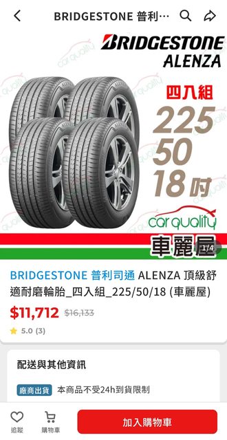 標題[情報] 車麗屋pchome Alenza 225 50 18 優惠