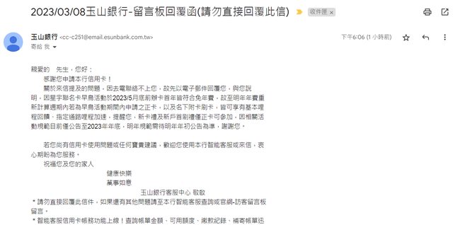 : 所以今天打電話問客服,若是首年免年費還有嗎?客服說「有的」,只是明年沒有免年費活