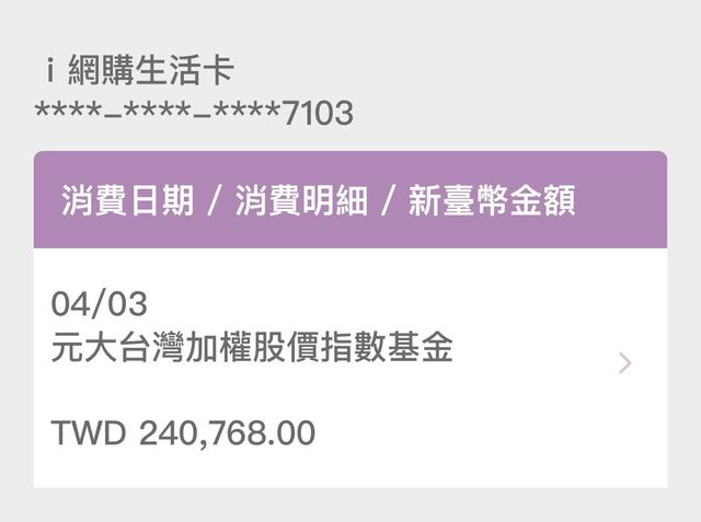 → willieliu : 信用卡可以買基金啊 但就沒回饋05/14 18:41