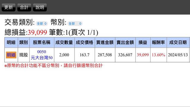 剛查另外一家,繳款日5/18,上週5/9太早賣,賠了411元:)
