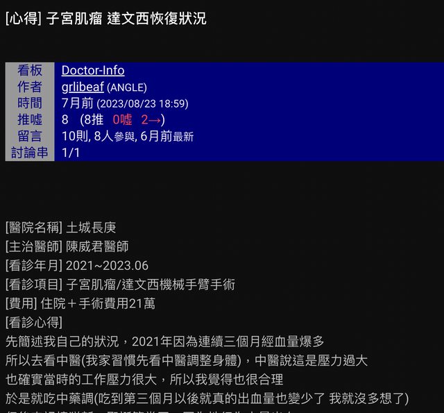 推 y95799579: 之前也曾搜尋開子宮肌瘤的醫生,看到 27.51.25.92 03/27 20:11