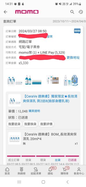 題外話:我4/1當天也有聯絡理膚的line客服,請他們協助處理,因momo客服無法給我一個