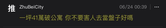 → ZhuBeiCity: 還有那個害人買公寓的 公寓又破又臭誰想住啦 06/24 07:12