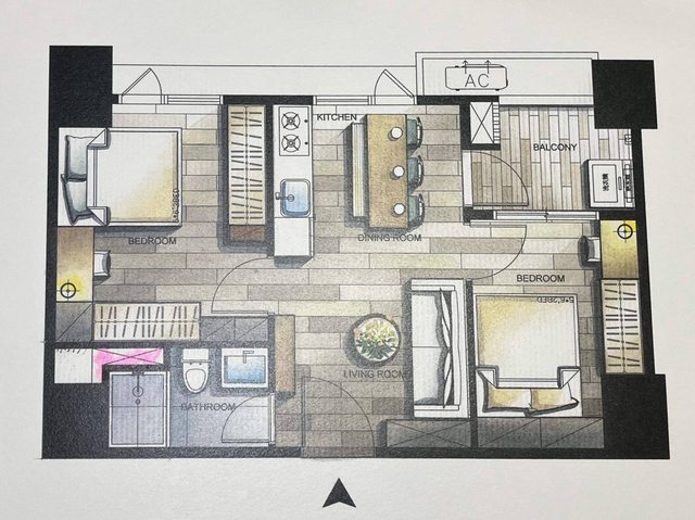 目前也有另外一個格局,但好像也是會有一些吃柱問題QQ 冰箱目前是會有附內嵌式的冰箱,但散熱跟維護有點怕是個問題;電視按照原先格局只能放 50吋左右。 https://i.imgur.com/78hF80u.jpg