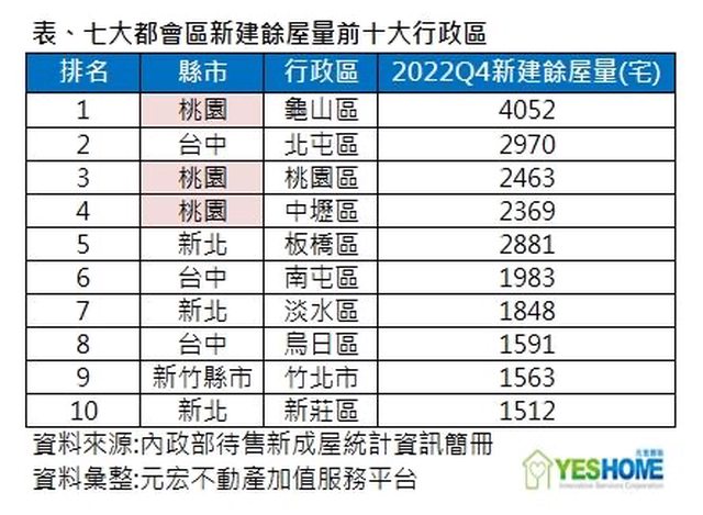 : 政府打炒見效,各區賣壓顯現!根據內政部最新資料,2022年Q4全台新建餘屋餘屋(5年