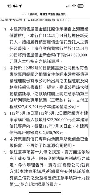 → batatas: 泊山妍 7月初好像建商就領走一半的信託基金07/31 14:43