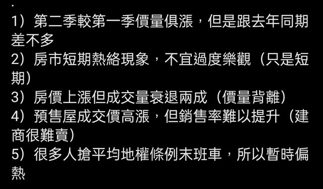 : 5)很多人搶平均地權條例末班車,所以暫時偏熱